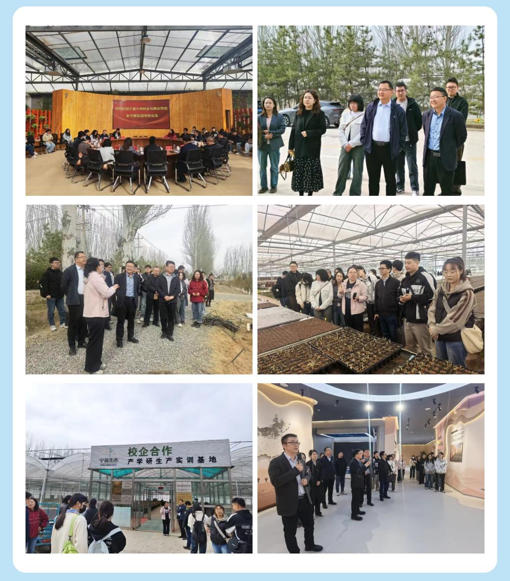 活动期间,师生一行人先后参观了宁苗集团校企合作试验基地、中国-中亚沙漠化防治中心及生态企业展馆,近距离了解企业在生态治理、沙荒修复、乡土植物开发等领域的技术成果与业务布局,直观感知行业前沿动态。