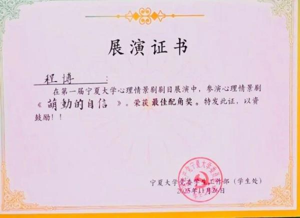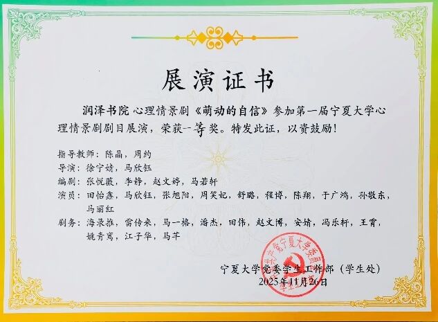 书院《萌动的自信》喜获第一届宁夏大学心理情景剧剧目展演一等奖